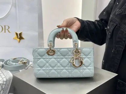 The Lady D-Joy bag captures the House’s vision of elegance and beauty by showcasing the iconic streamlined aesthetic of the Lady Dior line. Crafted in black lambskin with Cannage stitching, the refined and timeless style is enhanced by pale gold-finish metal D.I.O.R. charms elegantly embellishing its silhouette. Featuring one removable chain shoulder strap and another adjustable and removable leather shoulder strap, the small Lady D-Joy bag can be carried by hand, worn over the shoulder or crossbody as a daily companion.
