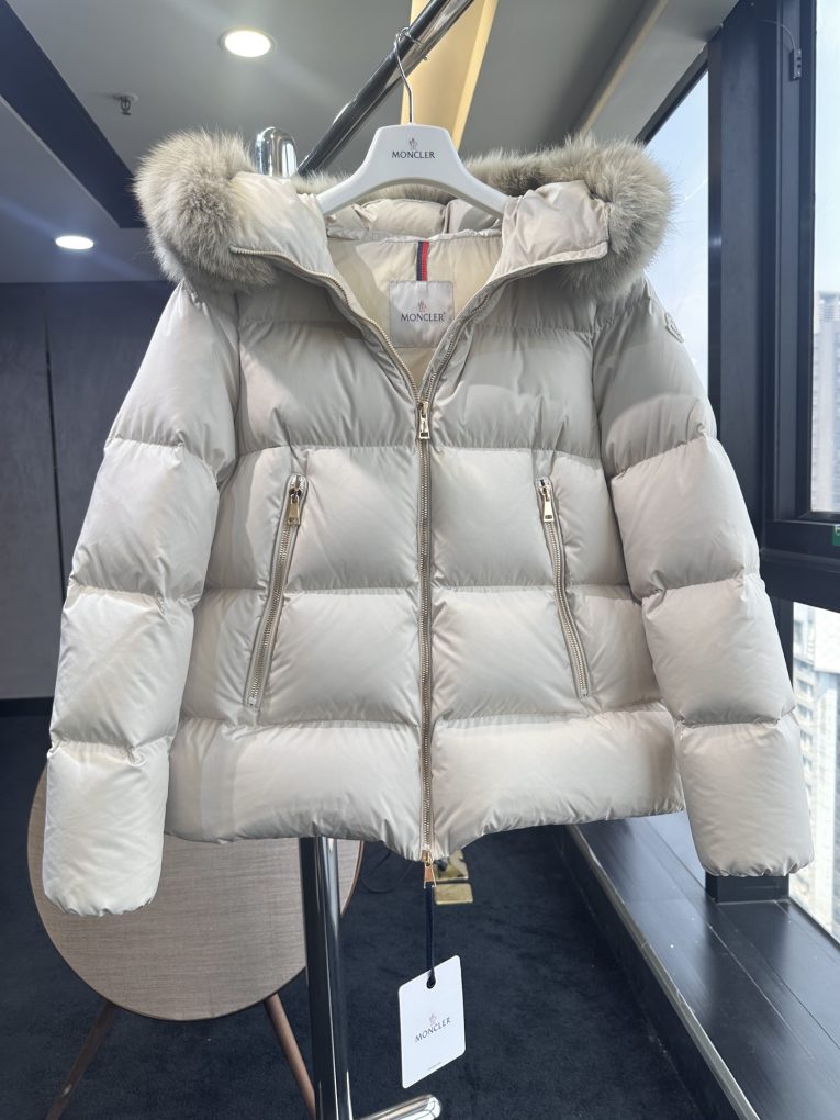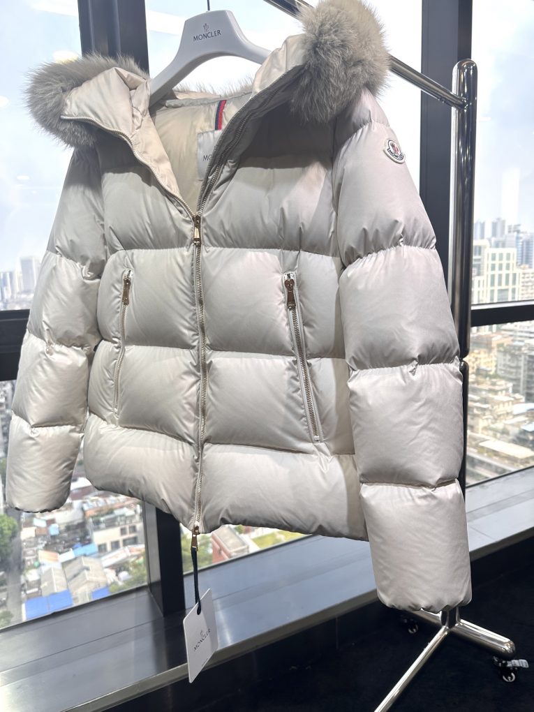 Replica Moncler Laichefur Hooded Shearling-Trimmed Short Down Jacket Women White