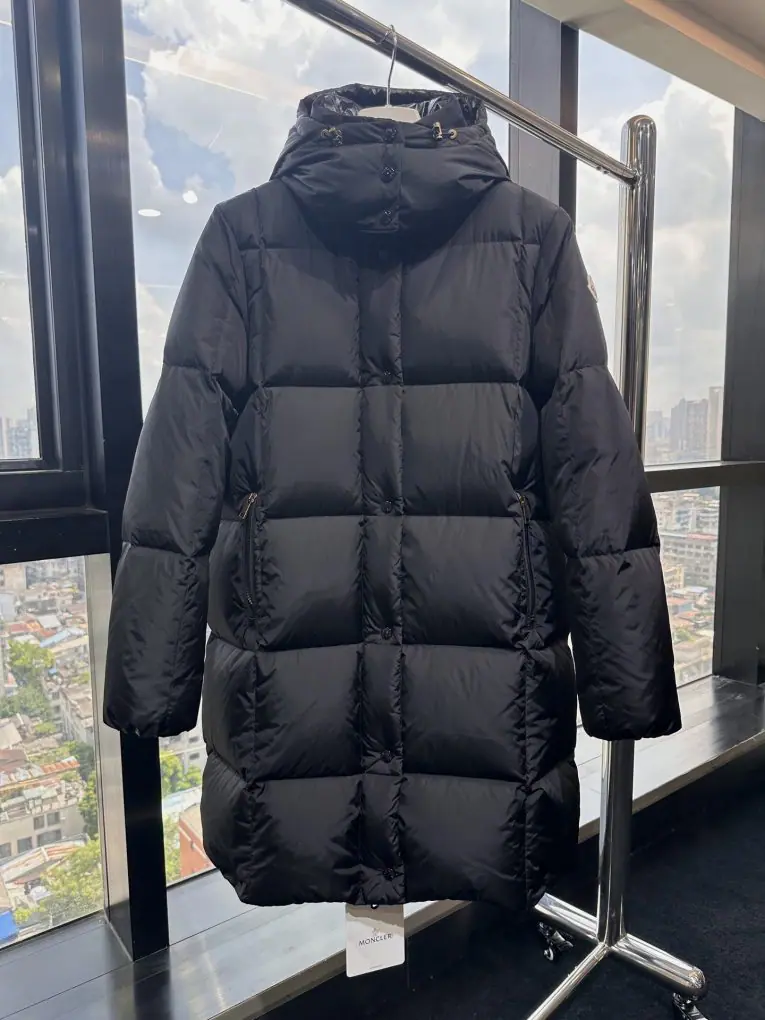 Replica Moncler Litte Square-Quilted Hooded Long Down Jacket Women Black